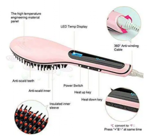 Electric LCD Fast Hair Straightener Comb Brush HQT-906 (PINK)