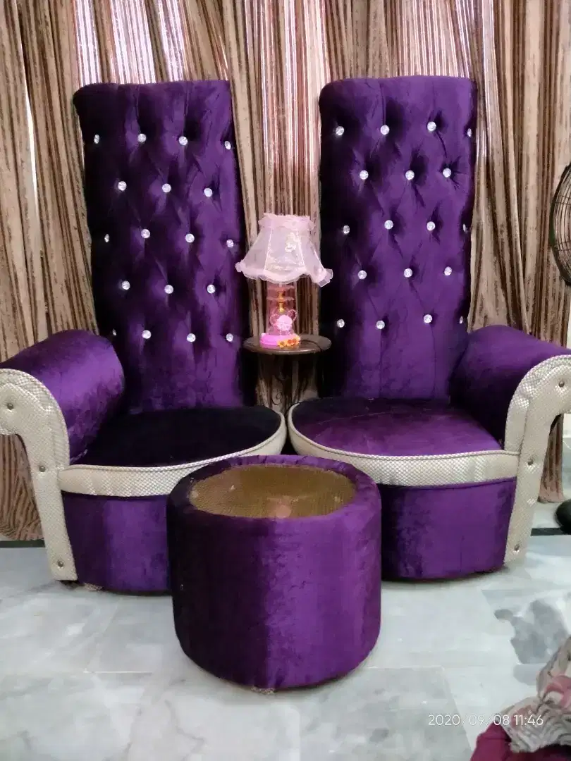 New imported velvet king size bed and high chairs set Available for Sale
